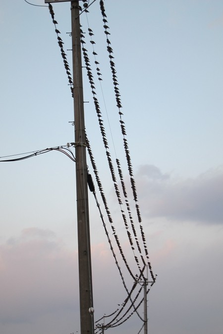 満員電線【枚方フォト】 投稿日 2011年1月30日 17:30 著者 カズマ カテゴリー フォト 出屋敷の電線に鳥がビッシリいてビックリ。 他にも止まるとこあるやろ、と。 電線が満員です。 場所はこのへん。地図をちょっと動かすと1号線出屋敷交差点が見えます。 大きな地図で見る 一羽飛び立つと一気にたくさん飛んでいきます。 「あーすいたすいた。」 香里園とか枚方市駅でたくさん人が降りたときってこんな感じですね。 鳥の大群ってなんか怖い。 これはムクドリ?でまだ鳴き声がかわいいですが、もうちょっと一号線のほうに行くと今度はカラスが大量にいて魔界の入り口みたいになってました。 シェア ツイート LINE フォト 出屋敷 自然 鳥