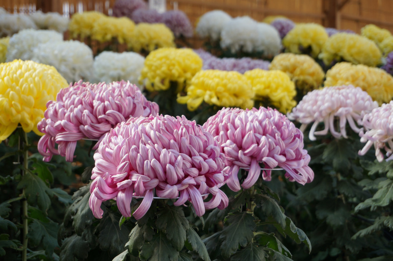 「大菊三本仕立て」というそうです。ズラーッと並んでて壮観です。