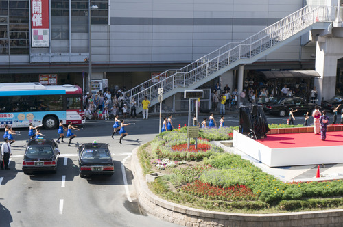 今年は市民パレードが復活したので枚方市駅前ロータリーはバス・タクシーのみが通行していて、中央部分にステージが設けられていました。