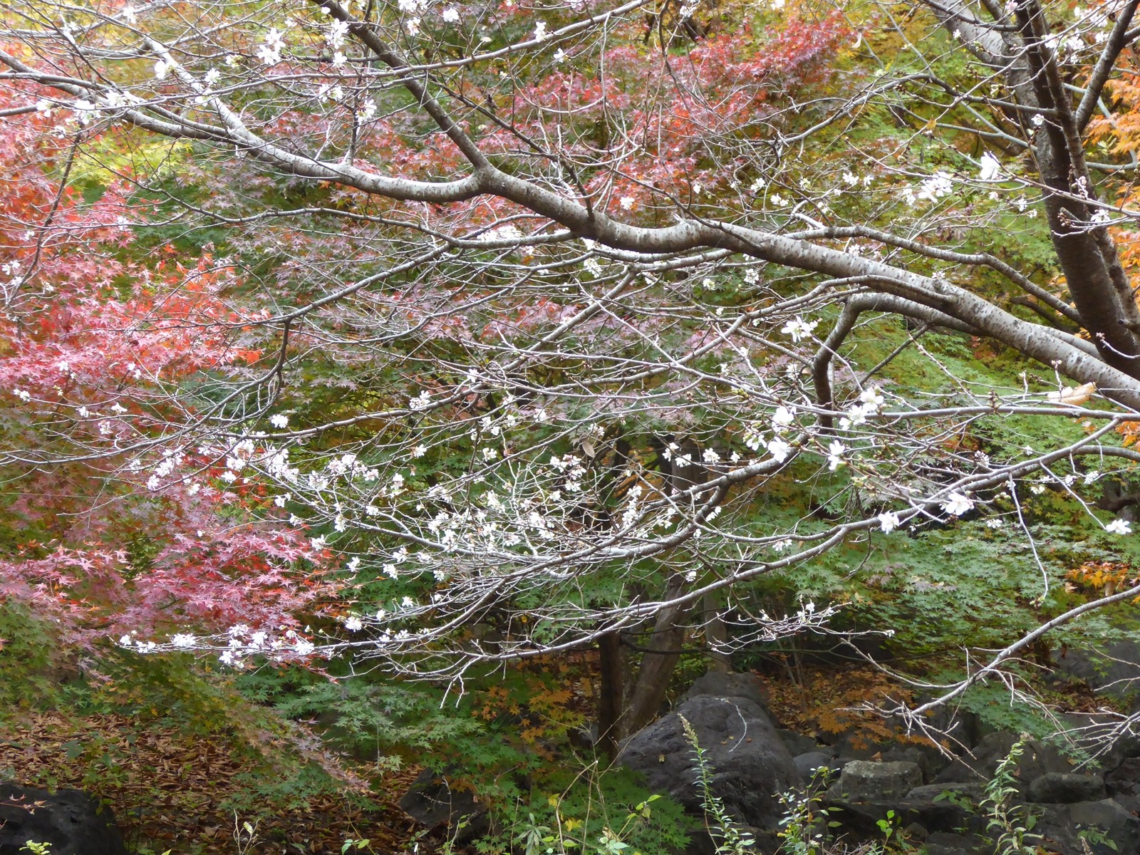 山田池公園のもみじ谷に紅葉を見に行ったら、咲いていました。