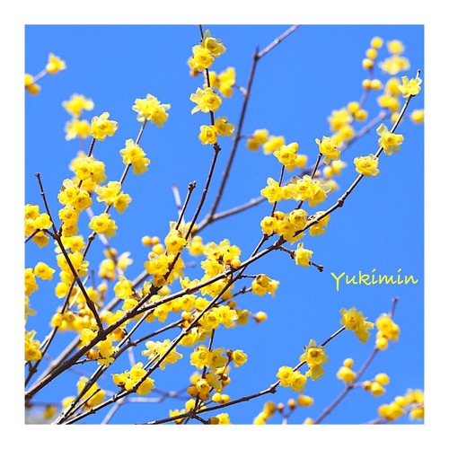 一瞬の青空をのかさず 青空の元 撮れてよかったです。蝋梅には、青空が良く似合います