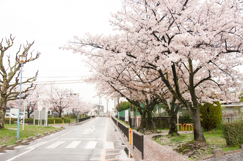 名前の通り、桜の木がたくさんある団地です。雨で散り始めてしまっていましたが、地面に落ちた花びらが雪が積もっているようでした!溝に花びらがいっぱい集まっているのがキレイでした。
