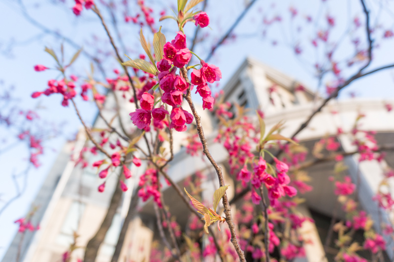 山田池公園のパークセンターあたりから外にでてみたら、穂谷川に沿って河津桜が咲いていました。曇りで夕暮れだったんですが、枚方で河津桜が見れると思ってなくてうれしくなって撮りました。満開のものは低木なので、りっぱな並木道になるにはまだまだですが、かなり長い距離にわたって咲いているのでお散歩にいいですよ。