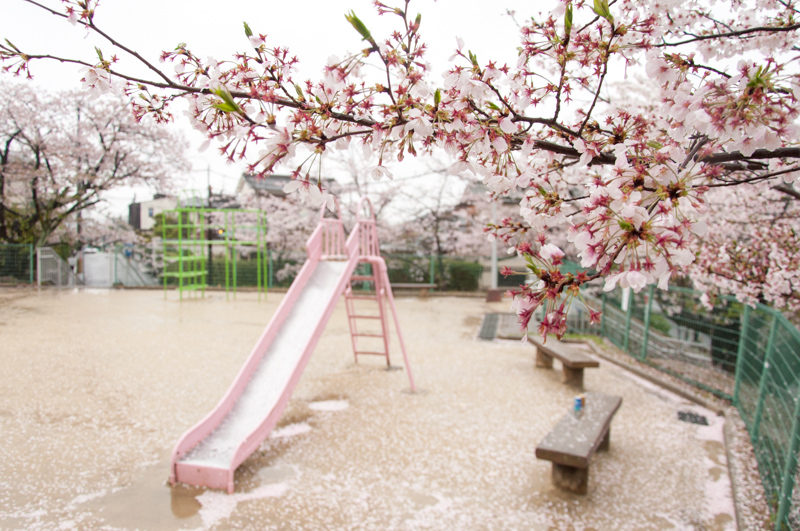 実家の近所で小さいころ毎日のように遊んでいた村野公園。いつもこの公園が春になって満開の桜で包まれるのが待ち遠しかったのを懐かしく思い出しました。遊具の色がパステルカラーで可愛らしくなっていました。
