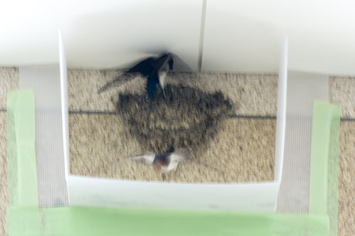 ツバメ狙いで30分近く張り込むこと数日、ようやく巣にかえってきたツバメを撮影。