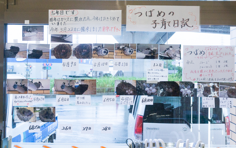 柵を設置したり、店内に写真日記があったりと、愛されて育っているつばめのよう。