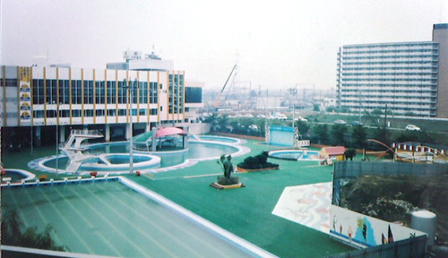 1枚目ヤングプラザプール右下の波プールがあったところで工事をしています