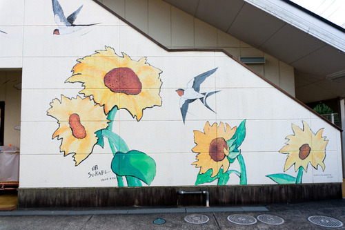 枚方の街中で見かけるアートを探す「枚方まちなかアート」、今回は光善寺保育園の園舎に描かれている『ツバメとひまわり』です!