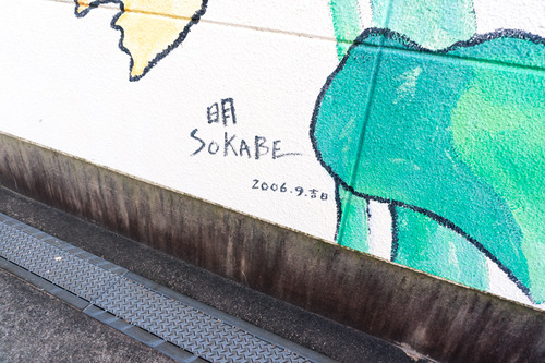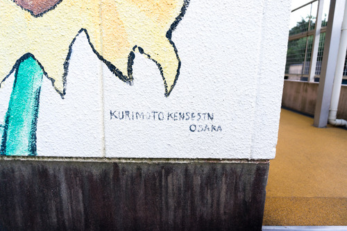 2006年の園舎建て替えの際に、絵を描いた方が自身のサイン(左)と保育園を建設した栗本建設さんの文字(右)を書かれたそうです。