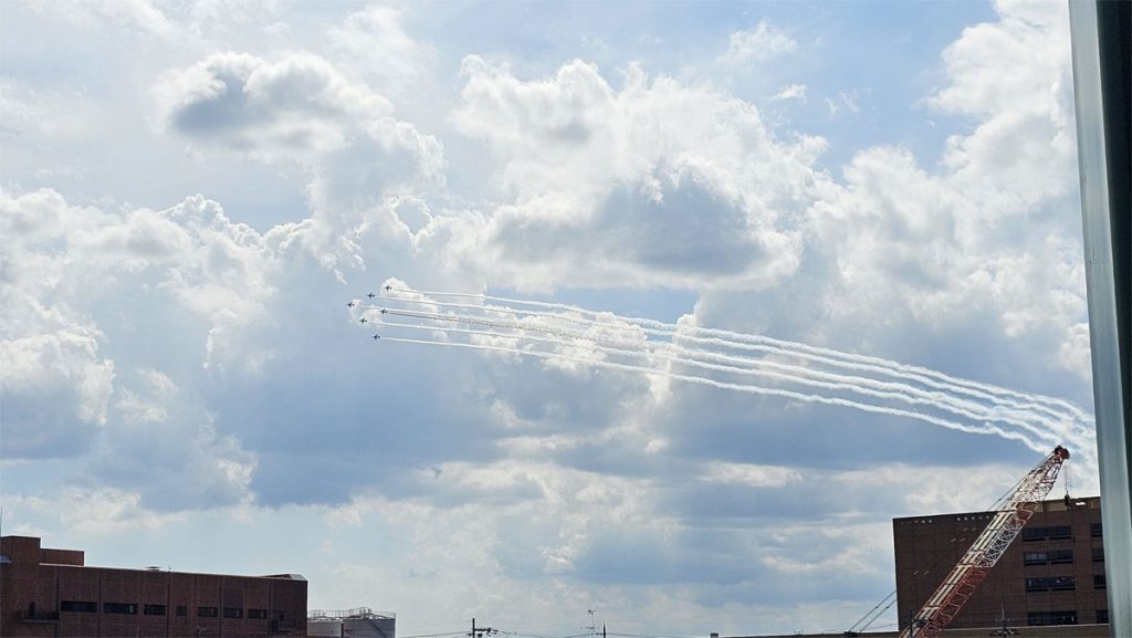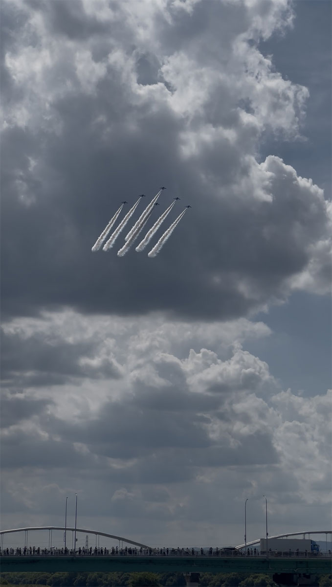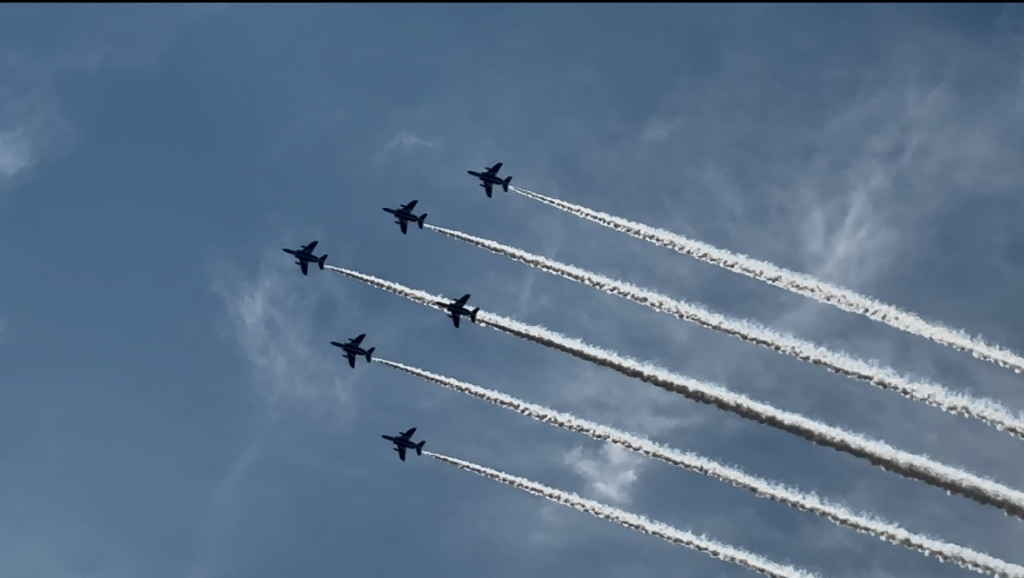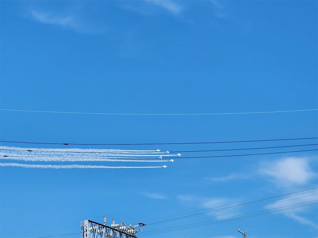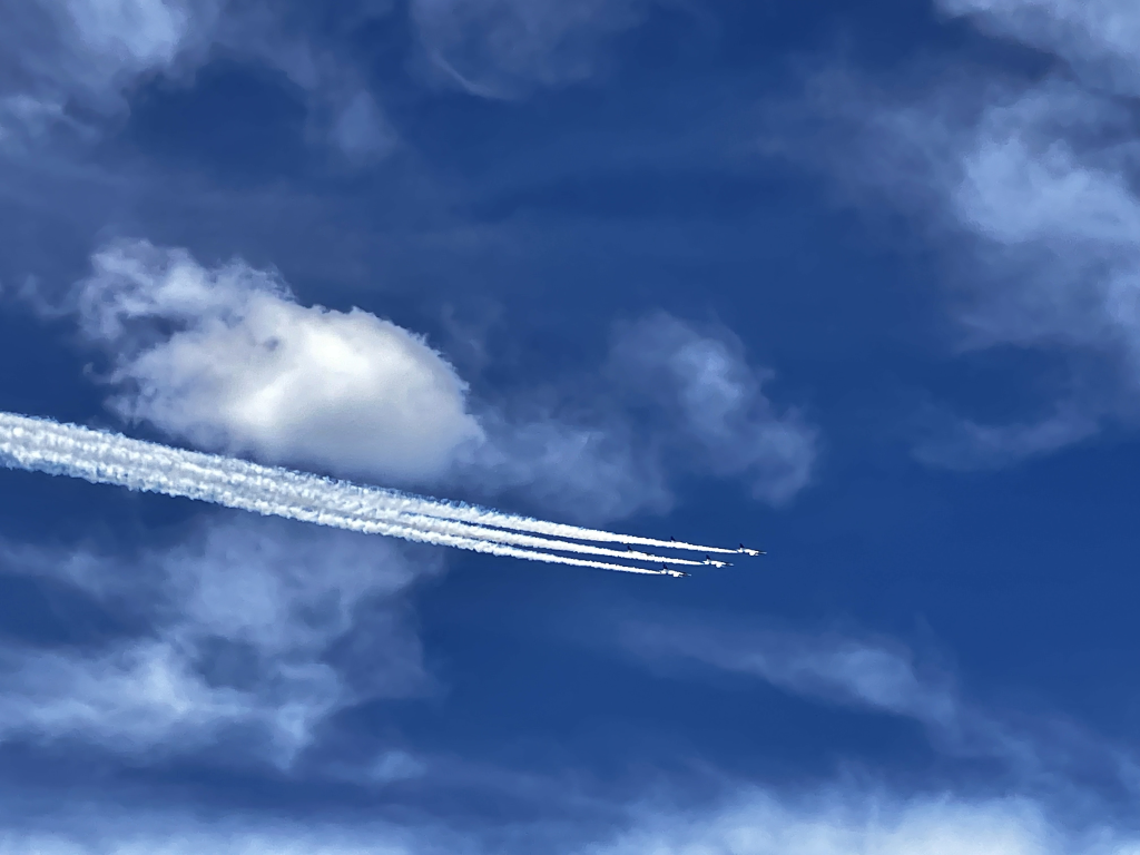 雲が多かったのですが、5機が煙をはいて飛ぶのがしっかりみえました。