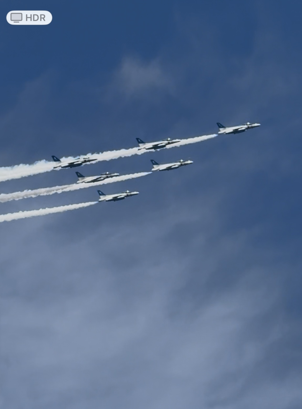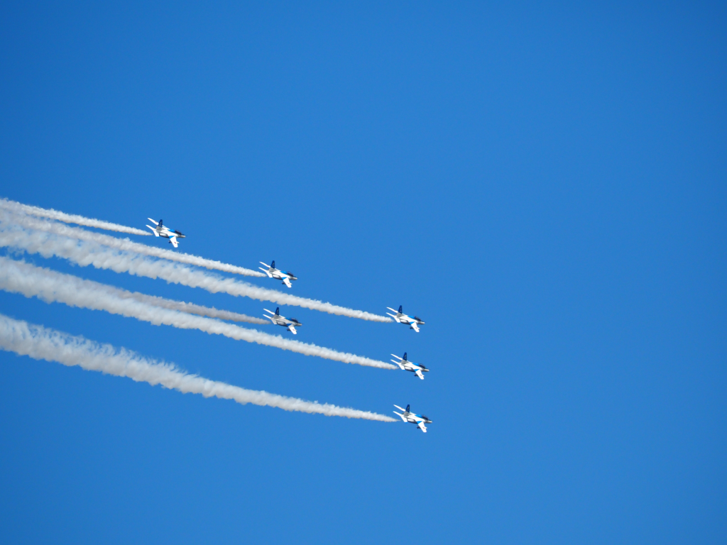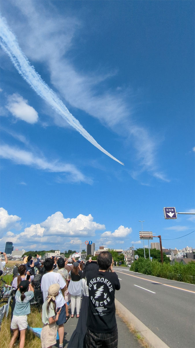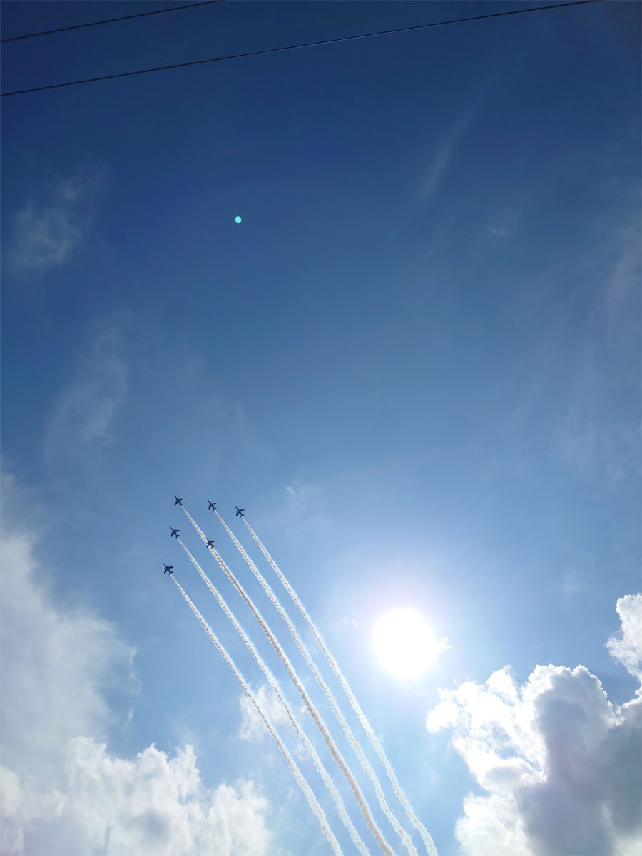 遠くからやってきてしっかりと旋回して綺麗なブルーインパルスのラインが見えて大満足でした。