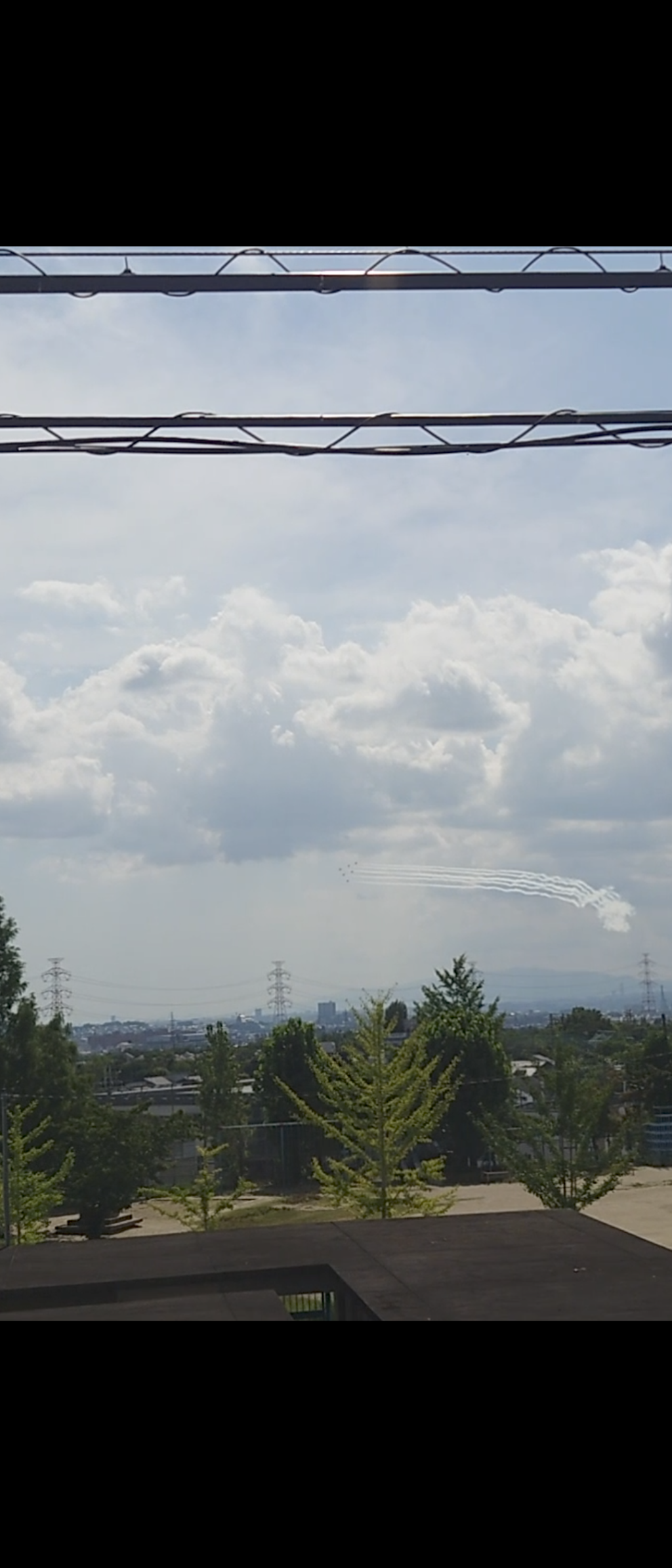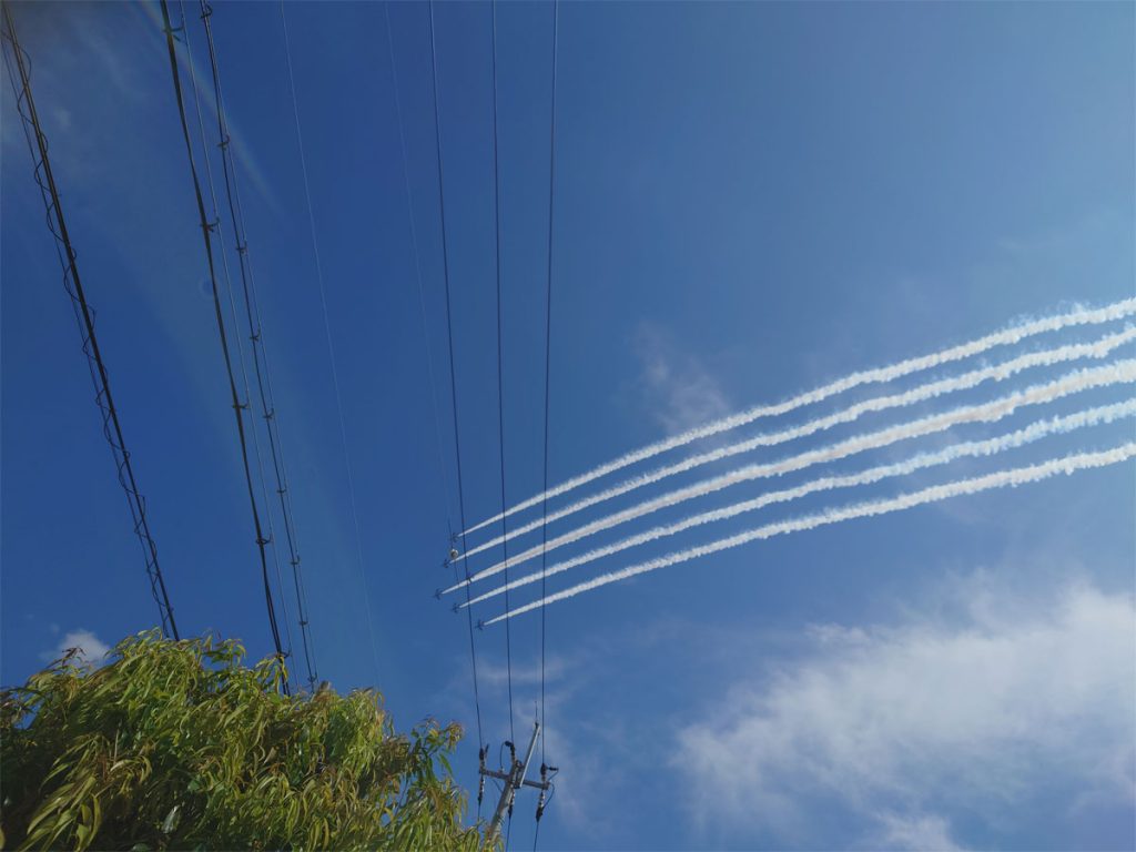 それでも、木で途中隠れまい、スマホの画面からブルーインパルスを必死で追いかけました!