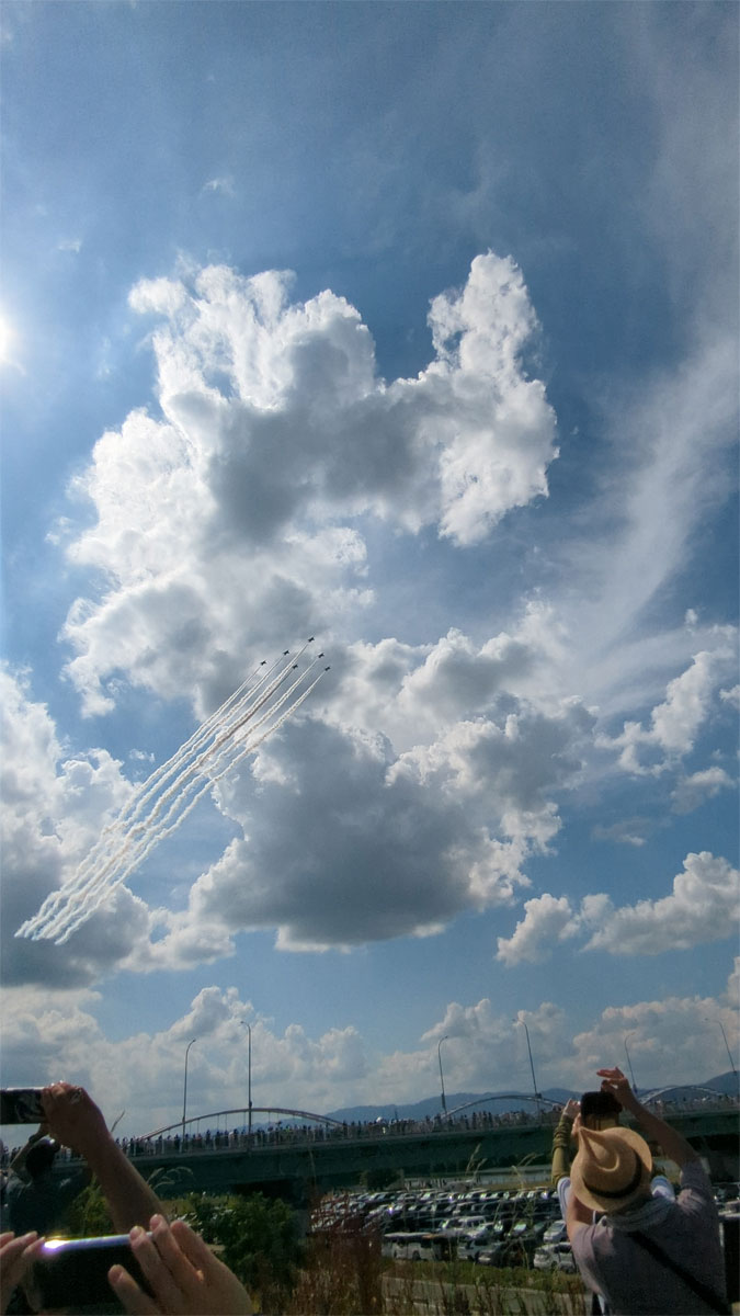 今回はブルーインパルス単体の写真ではなく、何らかの枚方の景色が映っている写真や動画が嬉しいです!
