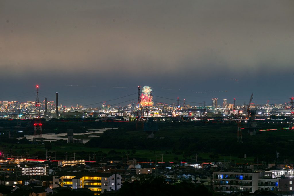 枚方から大阪・関西万博の花火「EXPO Thanks 花火大会」が見えています。