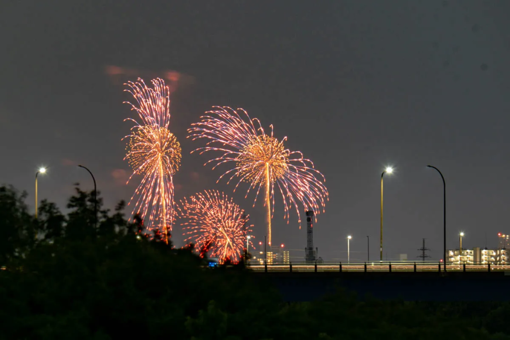 枚方から大阪・関西万博の花火「JAPAN FIREWORKS EXPO」が見えています。