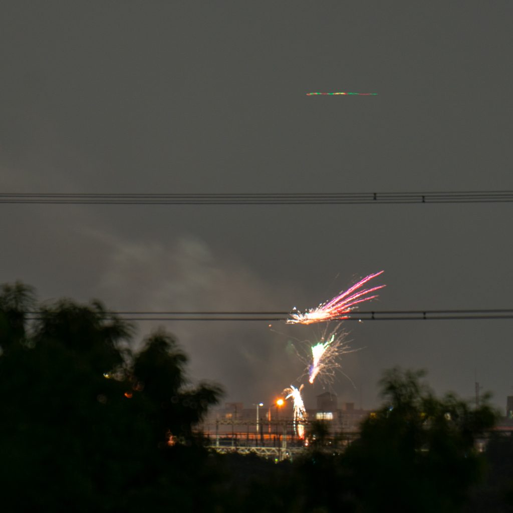 大きい花火なのかどうか、開催前は悩んでいたんですが、大きい花火で安心しました。しかも結構長かったです。上の線はドローンですね〜!