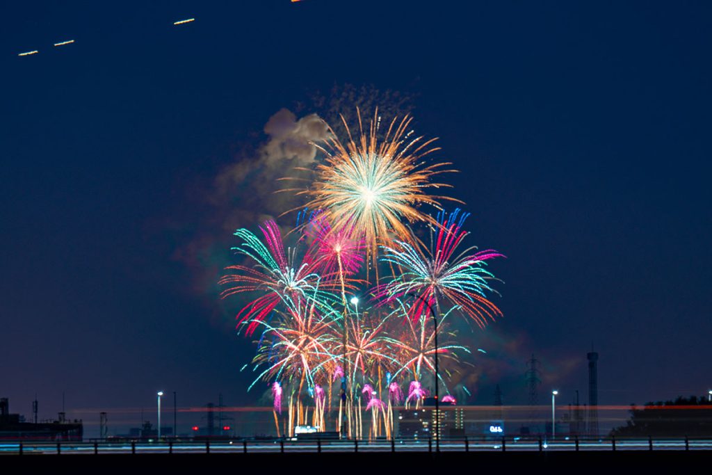 今回写真は上の1枚(比較明合成)だけで、ほぼ動画を撮っていたんですが、遠くから見てもわかる、めっちゃ豪華な構成の花火でしたね〜!