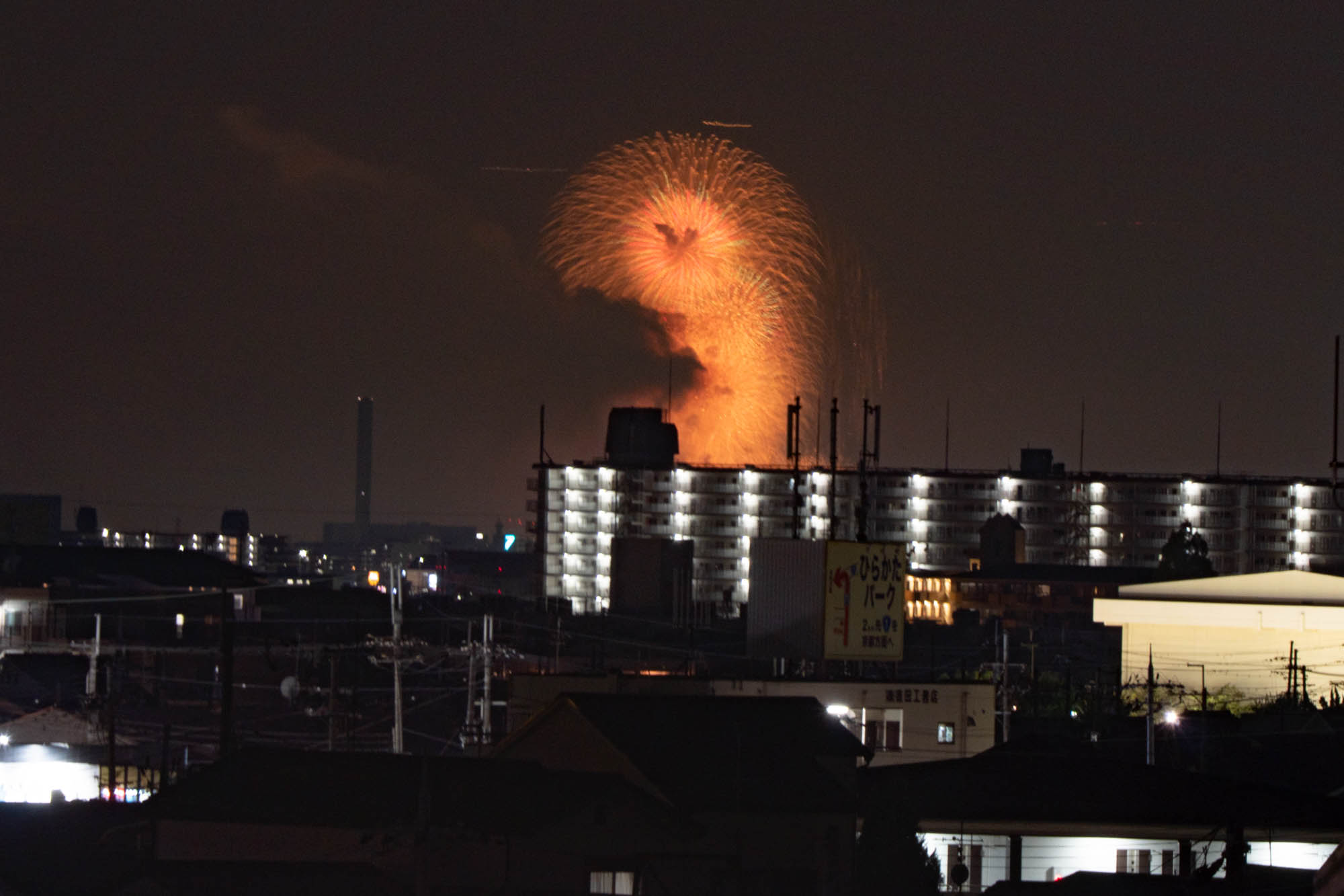 枚方から「第37回 なにわ淀川花火大会」と「第45回 いたみ花火大会」の花火が見えています。