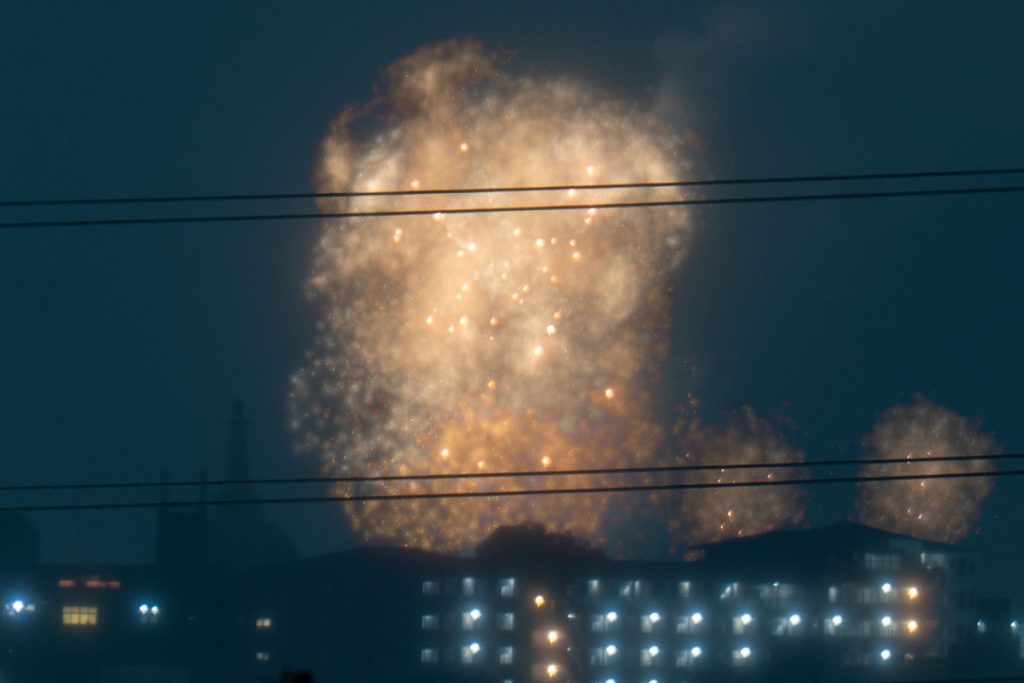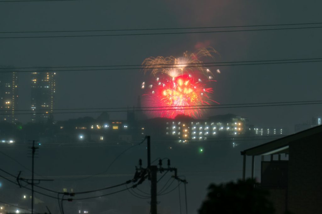 いたみ花火大会は神津大橋南側の猪名川河川敷で打ち上げられている花火大会。簡単に言うと、伊丹空港のすぐそばです。この花火大会も例年よりも遅めの開催。