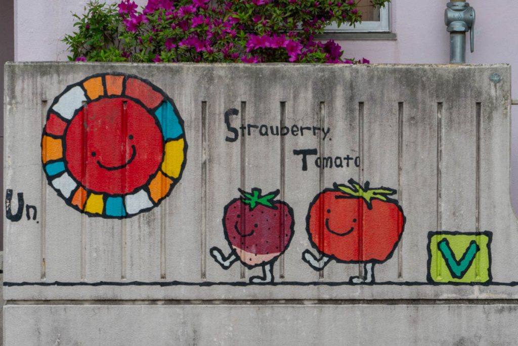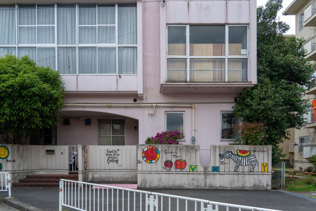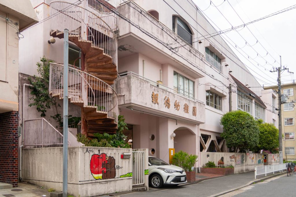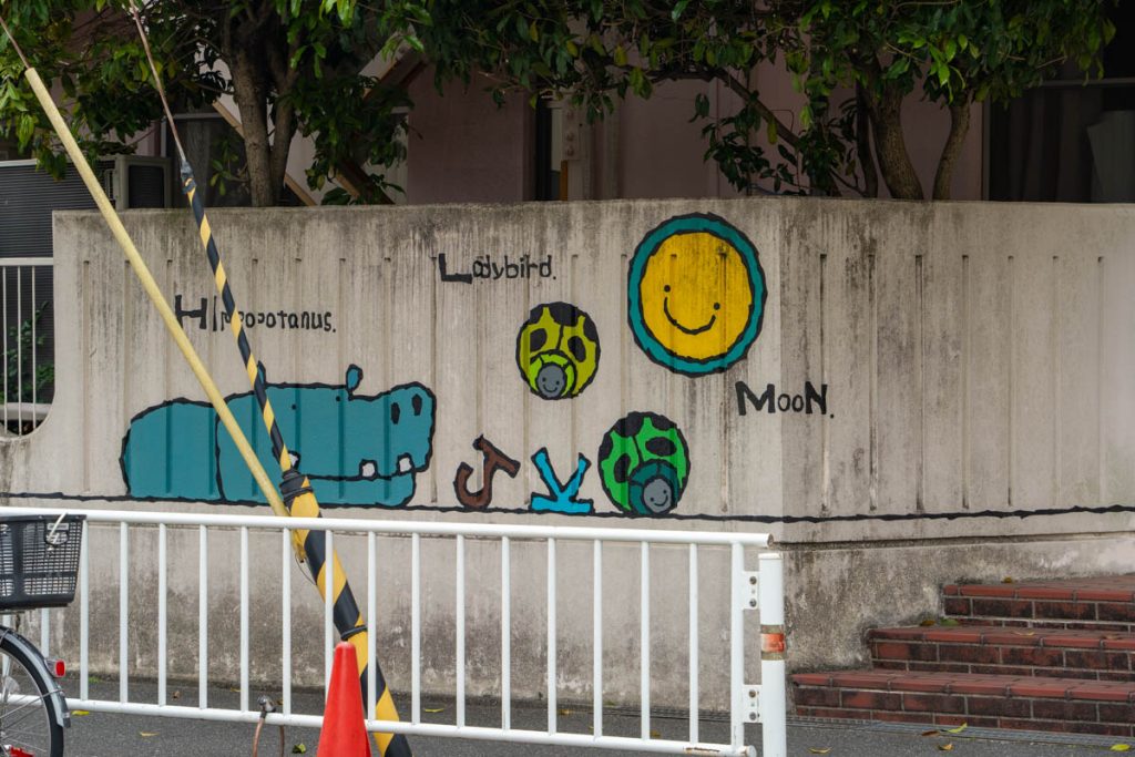 招提南町にある「報徳幼稚園」の壁にあるイラストです。