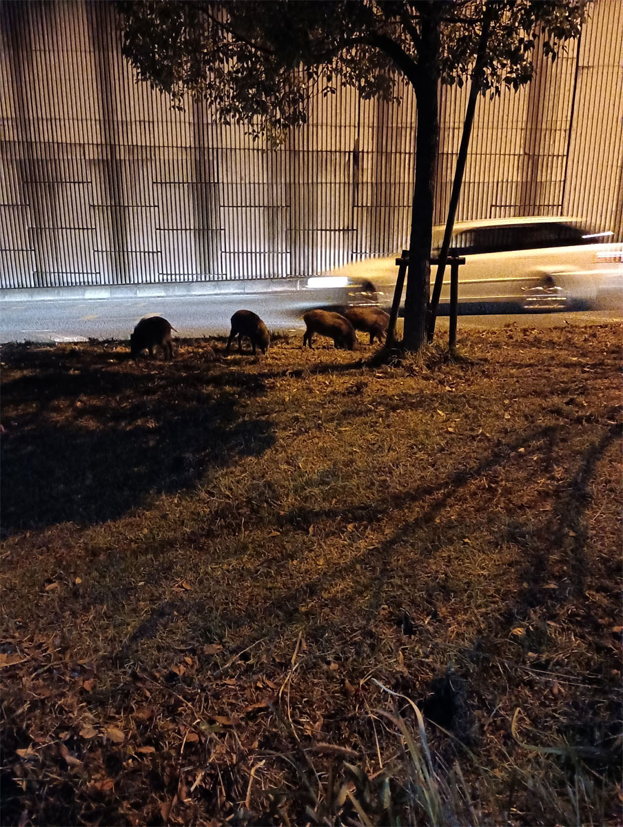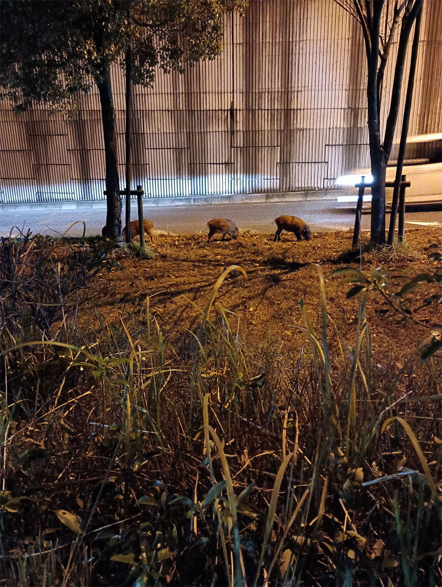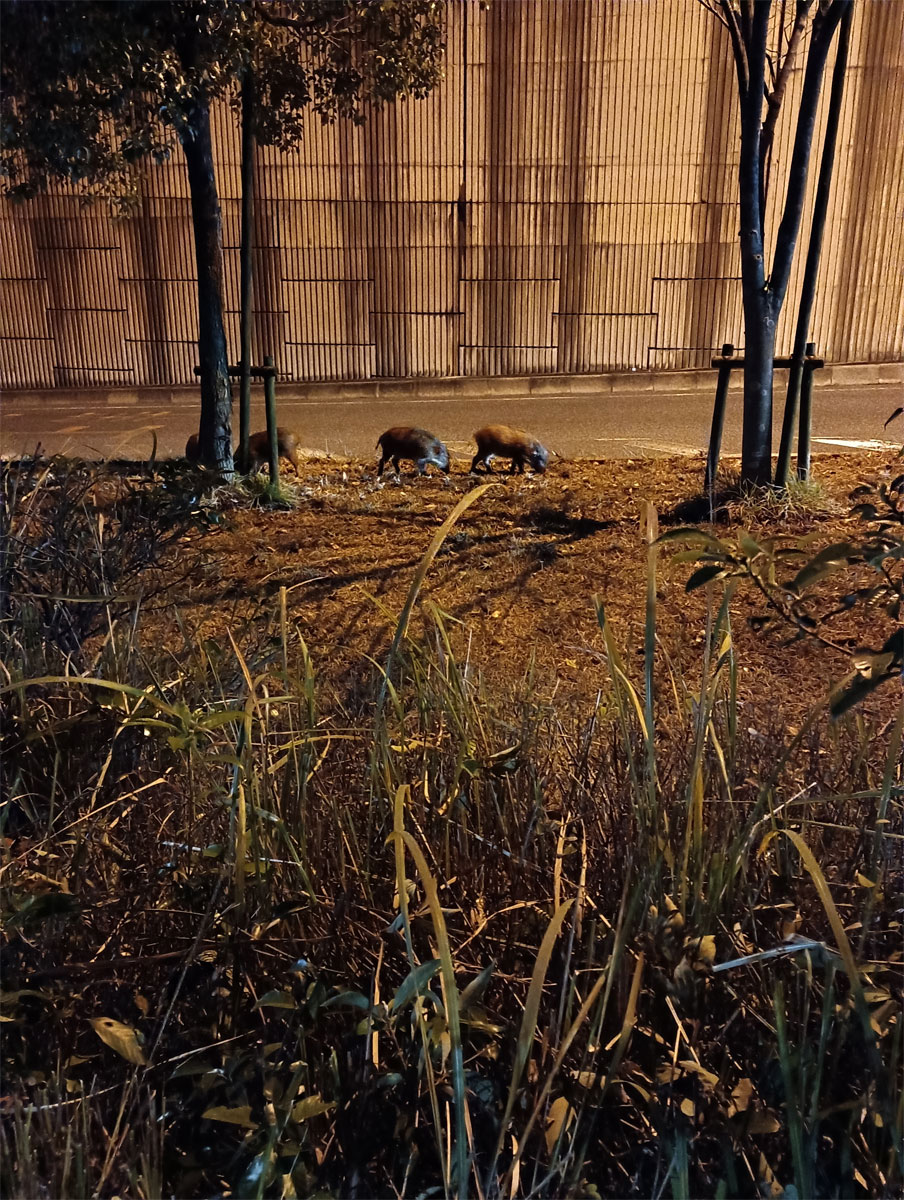 猪🐗を夕方津田南町、第二京阪の側道にて見つけました。