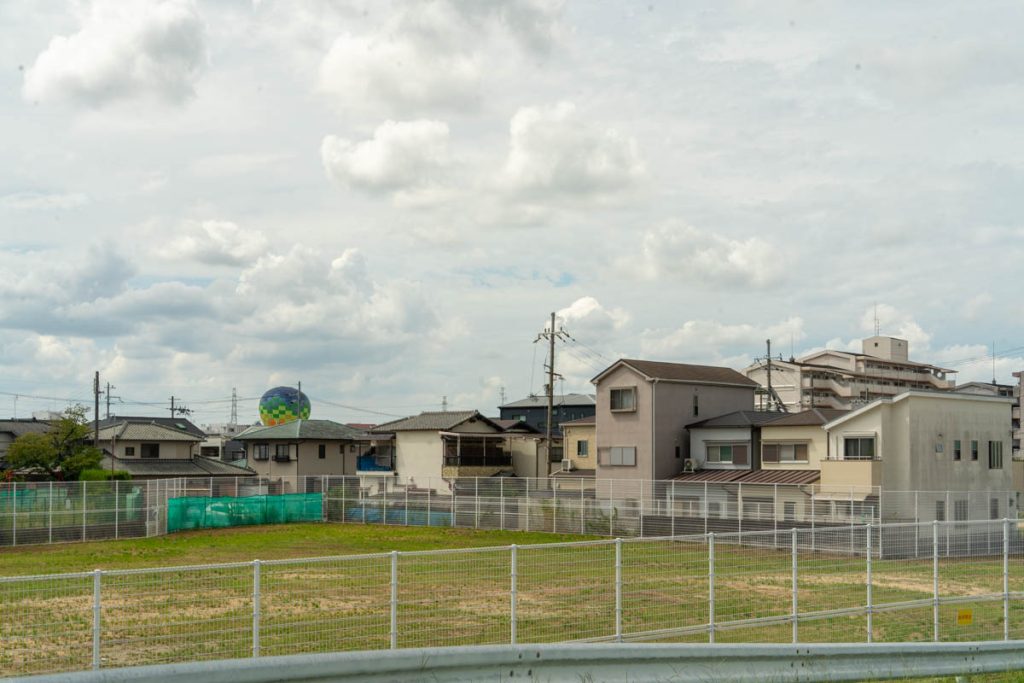 牧野高校の気球を津田サイエンスヒルズ、招提北町3丁目の船橋川堤防、牧野小学校付近の船橋川堤防から撮りました。
