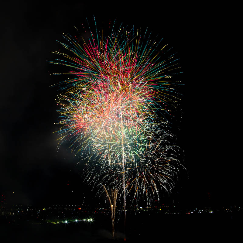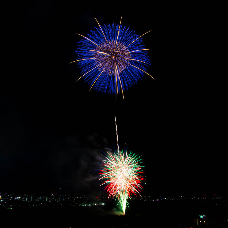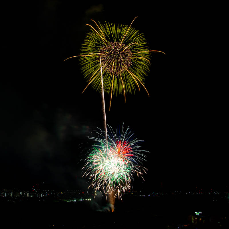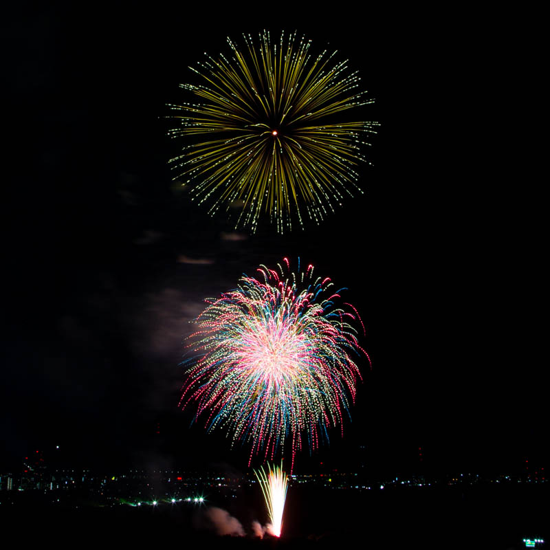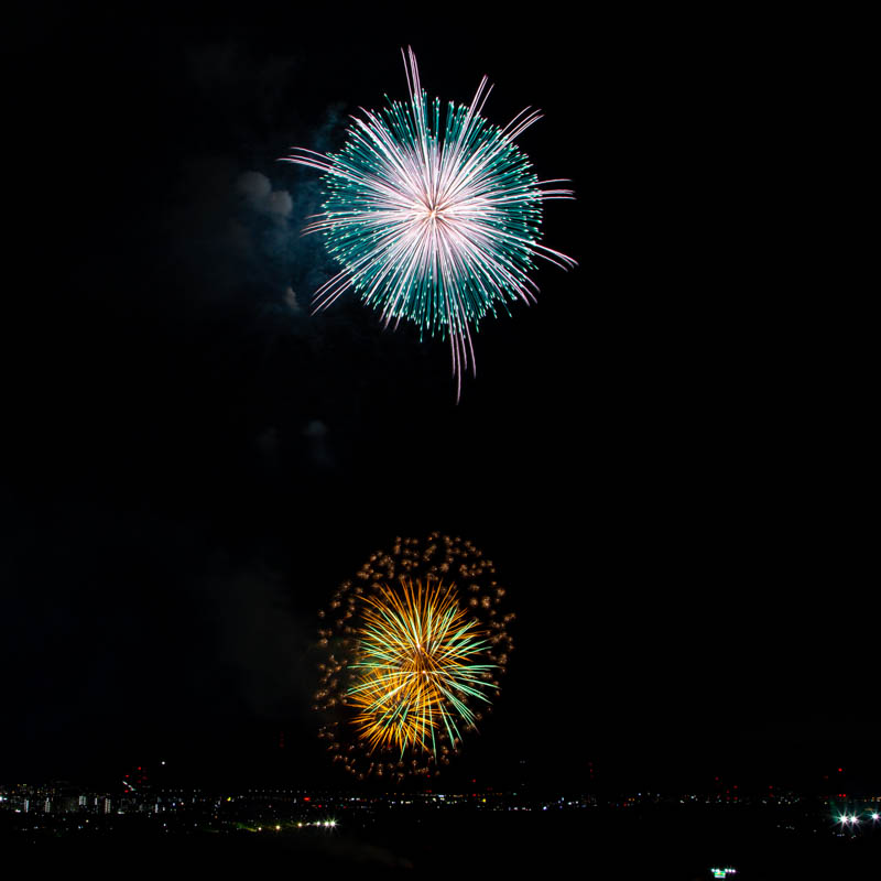 続いてはシュン@ひらつーが枚方公園駅周辺から撮影した花火。