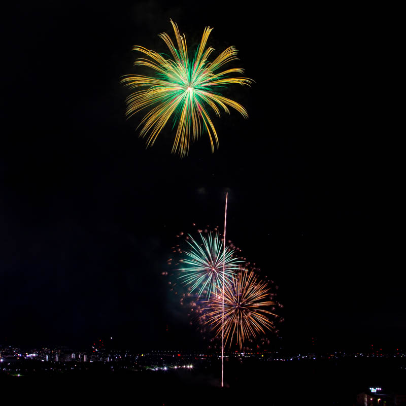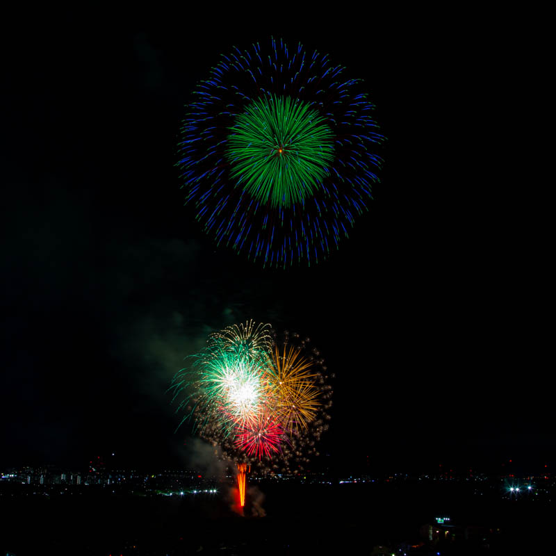 これらの写真を撮るため30分の間、花火を楽しむ間もなく、結構移動したので肉体的に疲れました笑。