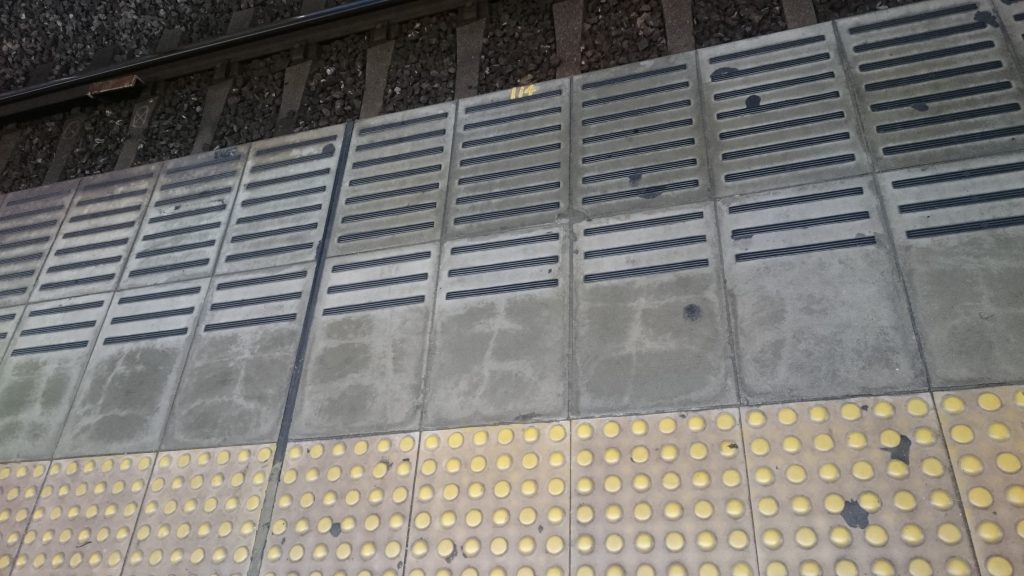 枚方市駅のホームにある床のタイルが「おおおおおおお」と見える場所があります。