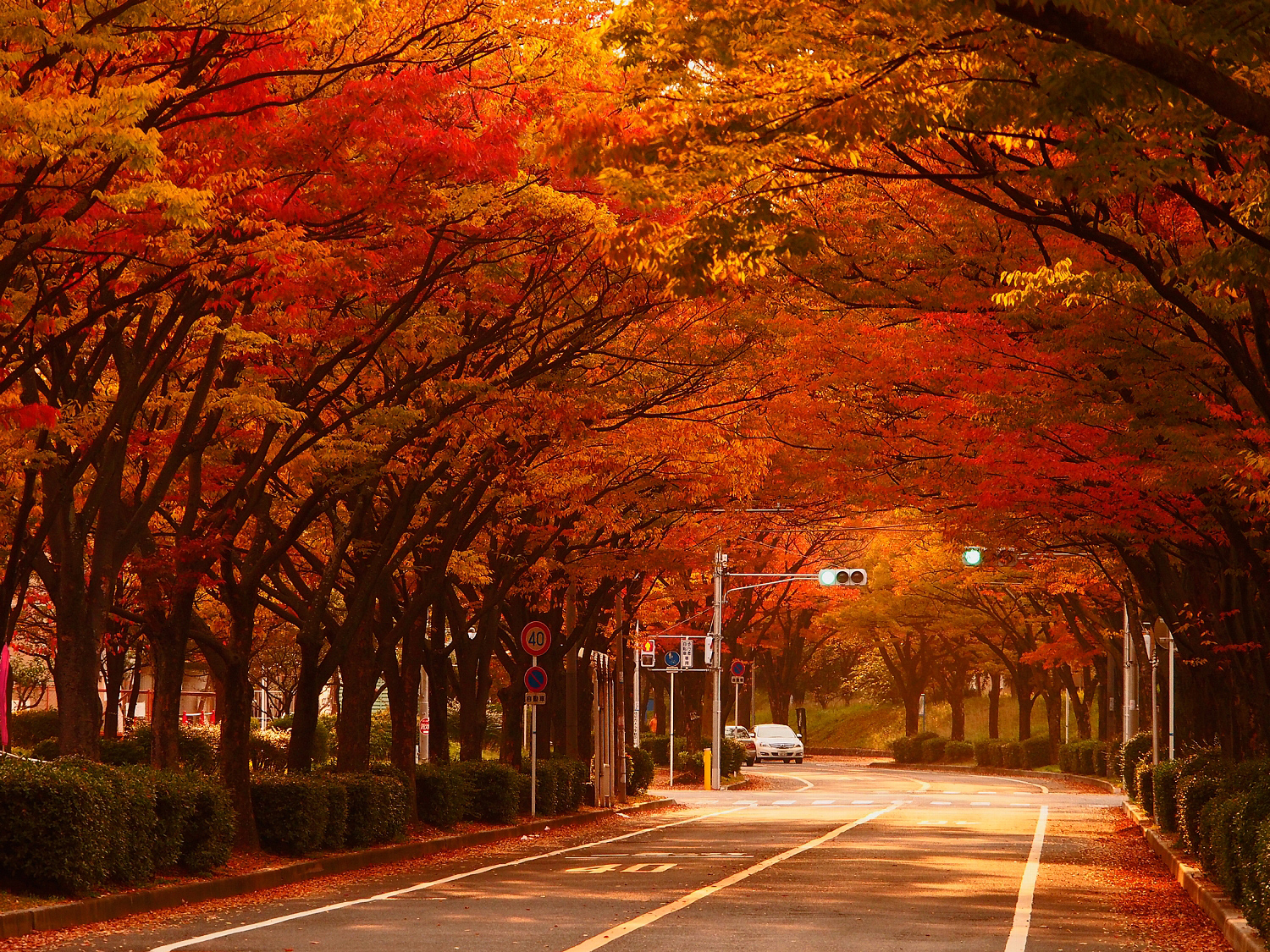 3枚目は「枚方八景」にも選ばれている香里団地のけやき通り、紅葉時の彩りのトンネルは絶景です。
