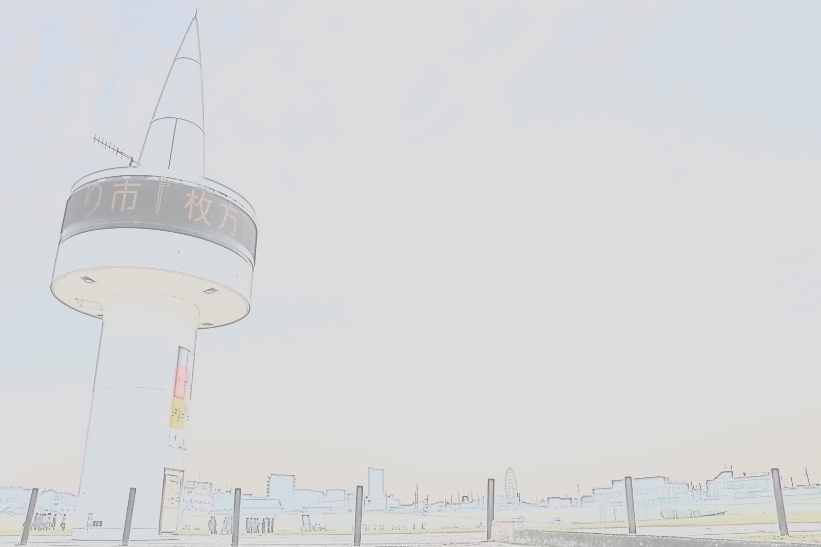 2枚目の写真は水彩画風に撮ってみたのですが、偶然にも水位塔に「枚方」の文字が写ってました。