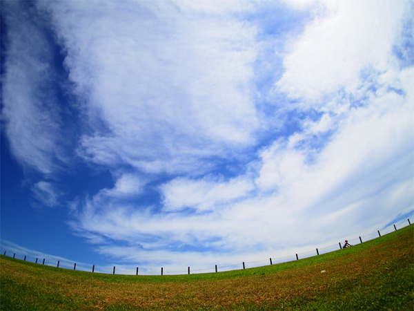 1.側道から見た土手も魚眼レンズマジックでおもしろくなりました。