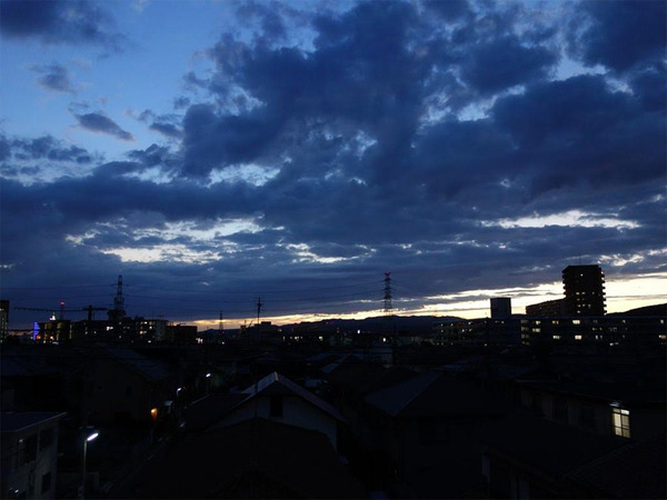 洗濯物を取り込もうと窓の外を見たら、あまりにもキレイな夕暮れだったのであわててカメラを引っ張りだして撮影しました。