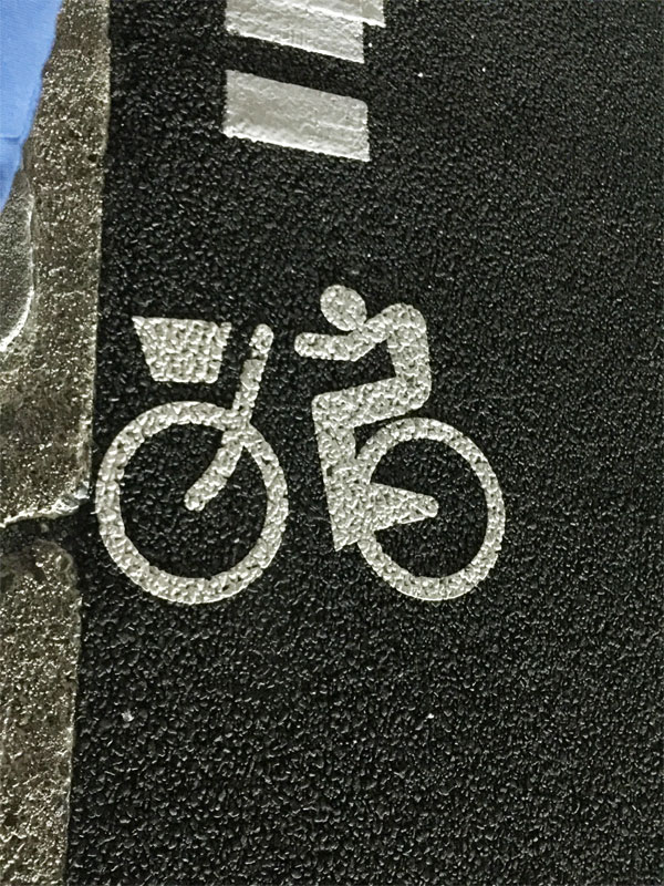 楠葉界隈の車道に、最近自転車用のレーン標記が書かれていますが、その中のたったひとつだけ他と違うレアマーク?があったので投稿します。