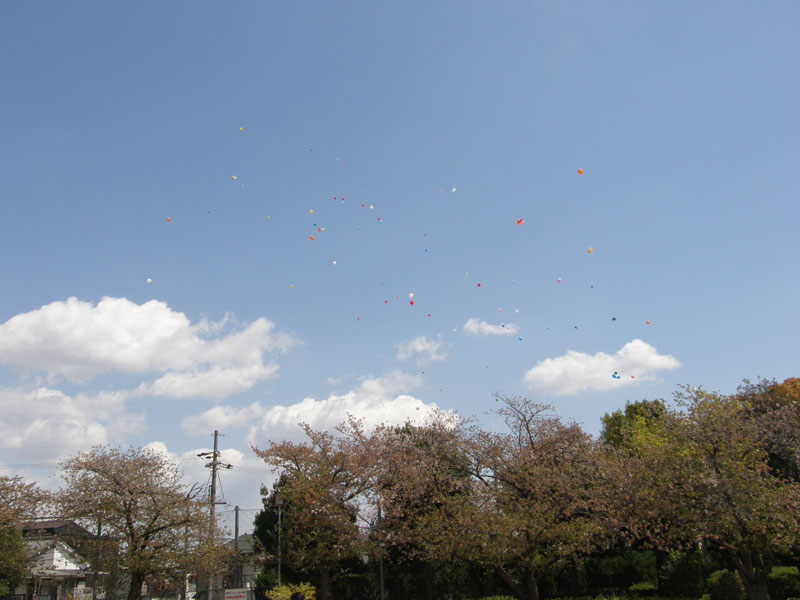 4月8日11時 堂山公園に約80名が集まってふうせん飛ばしを行ないました。