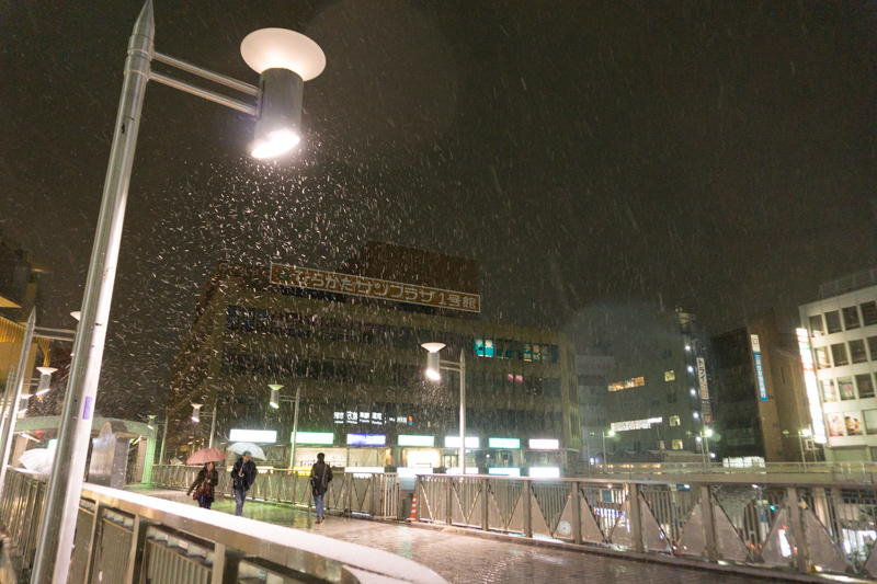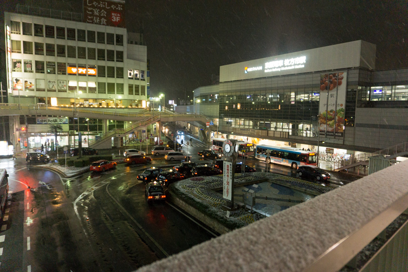 今夜19時過ぎから降り出した、枚方市駅前の雪の様子です。