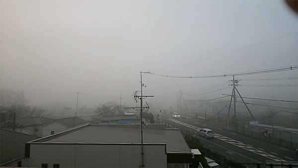 八幡に越してきてこの位置から踏切が見えないなんて経験がないぐらいの濃霧です。