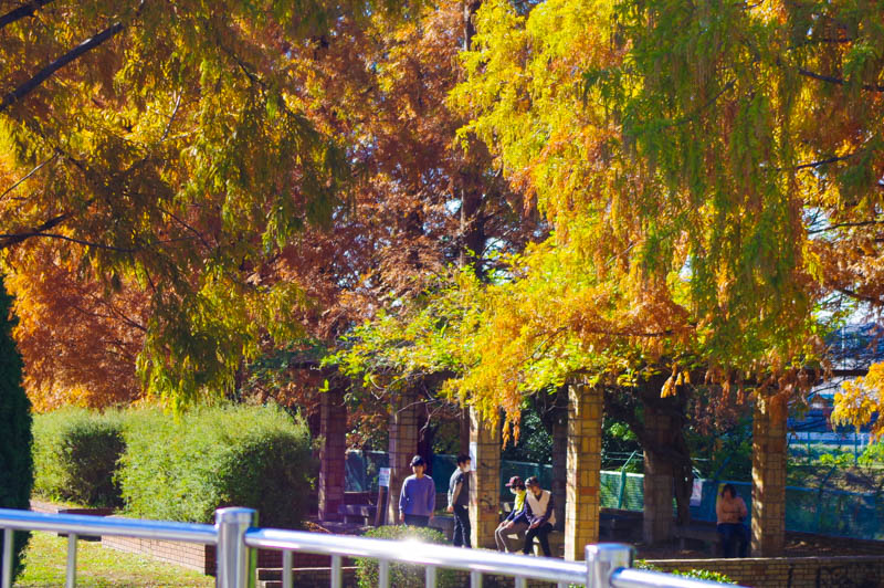 紅葉の中での井戸端会議。メタセコイヤ?もいいグラデーションでした。