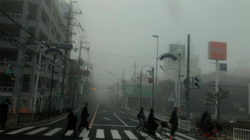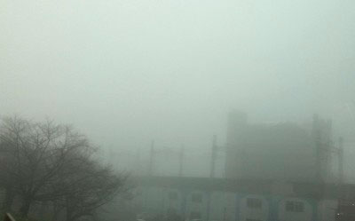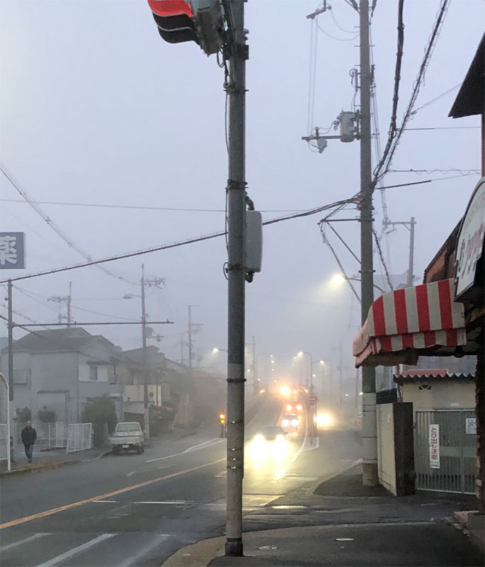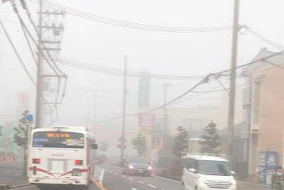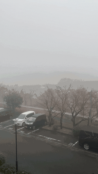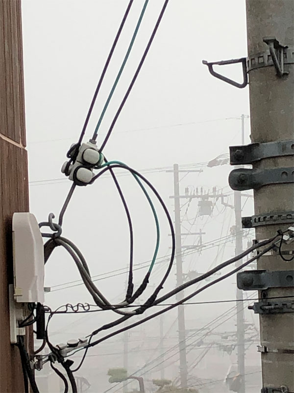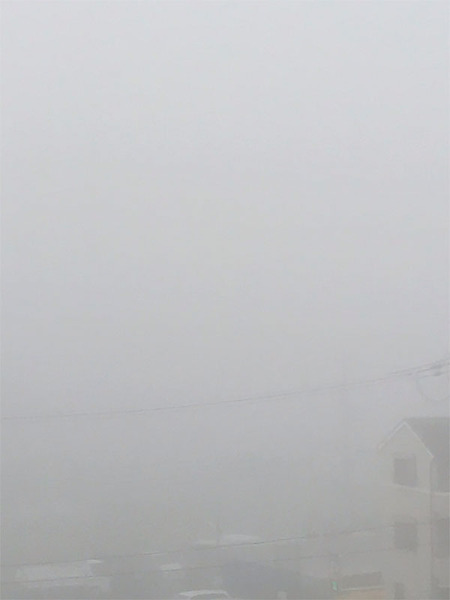 ベランダから見る風景ですけど…電柱が、霞んでます。