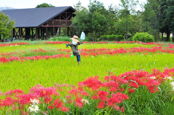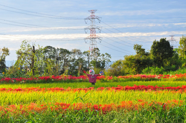 田んぼを縁取るように咲き誇っており、壮観な光景に多くの方々が撮影されていました。