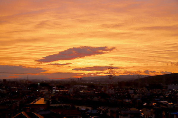 なんか空が焼けてきたので、楠葉面取町の高台に上がってしばらく空を眺めていました。