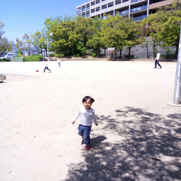 (2枚目)市内の公園で追いかけっこをしていたら、楽しすぎて笑いすぎてお腹いたいわ!な写真。