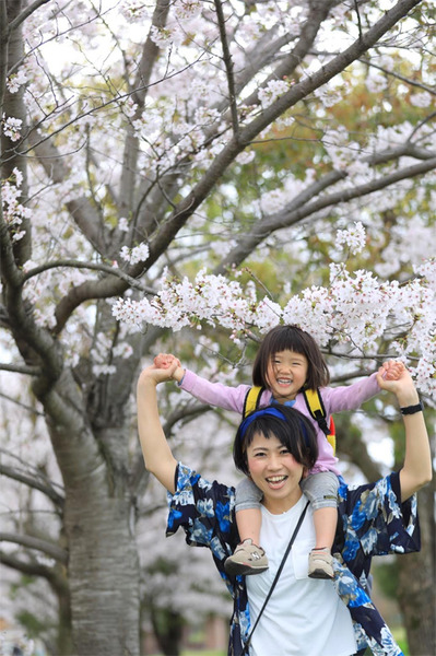トレーナーの100という数字、息子の笑顔と満開の桜に点数つけられた気がしてますw