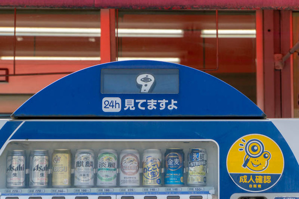 春日のヤマザキYショップの前にあるタバコとお酒を販売する自販機。