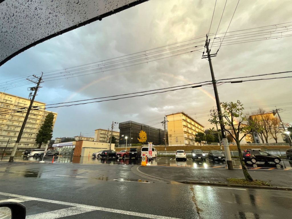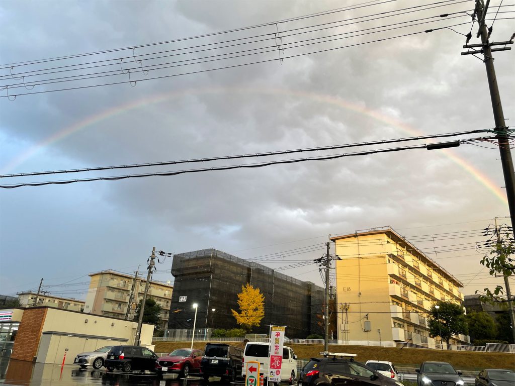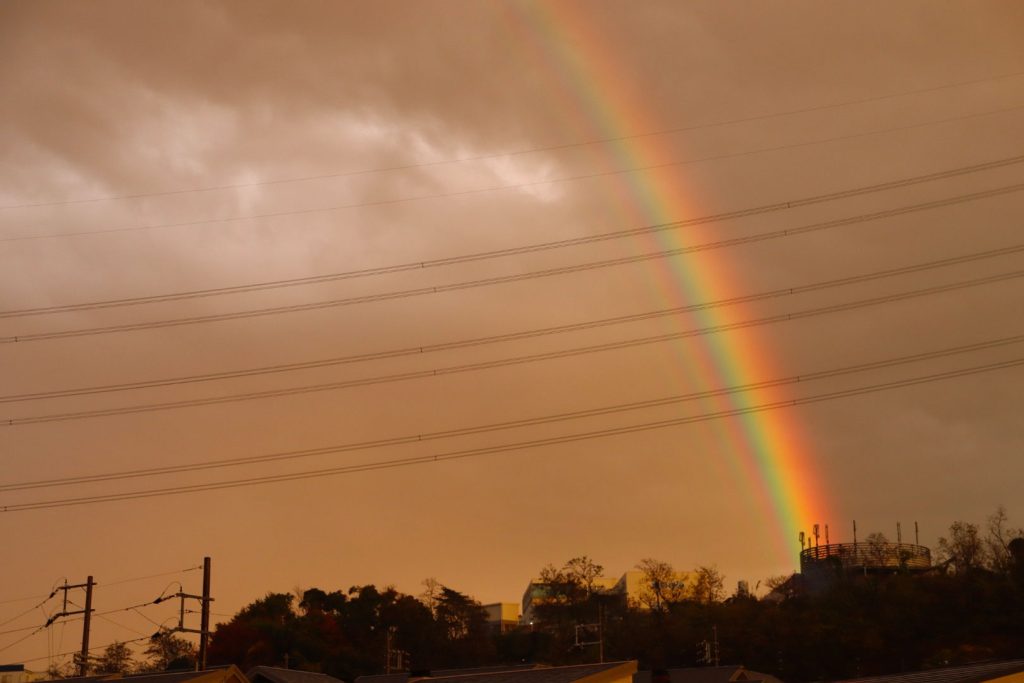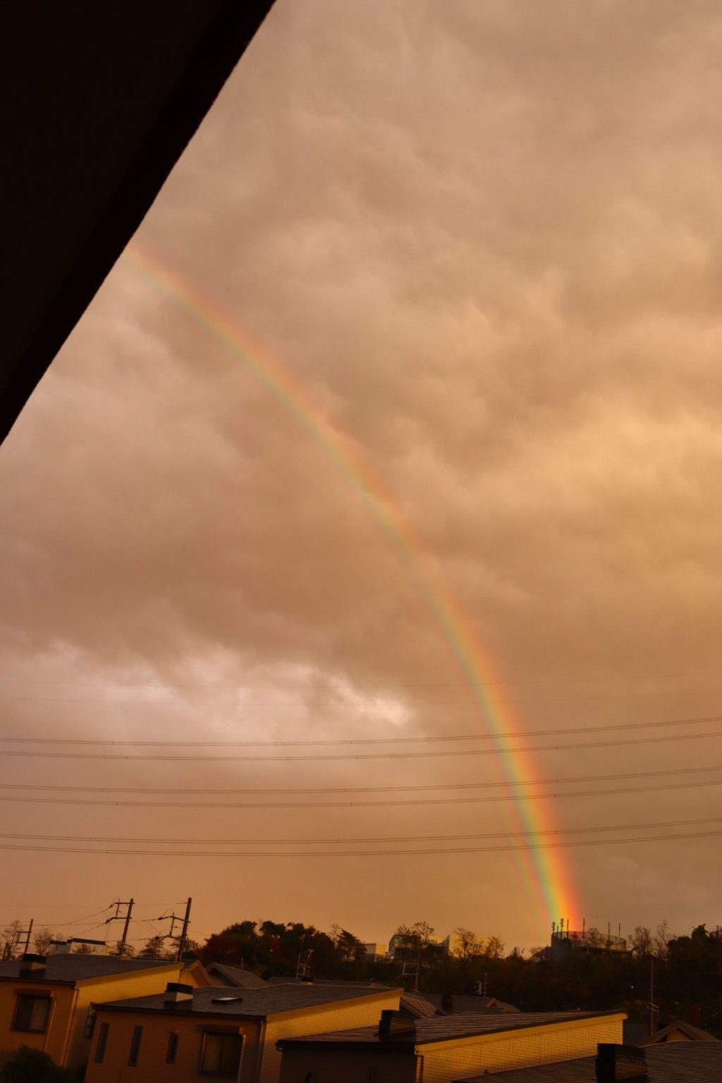 11月23日16時ごろに枚方を襲った豪雨&落雷後に出た虹の写真です。