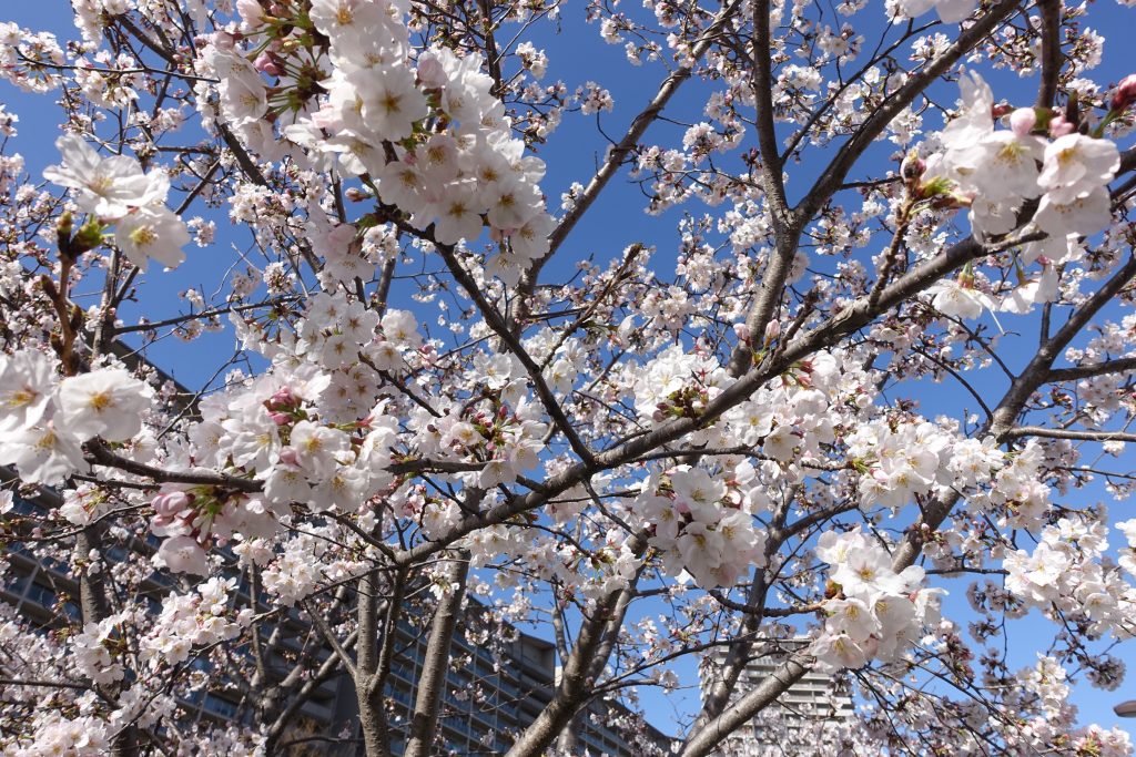 満開でした!近くで見るとブワッと花が開いていて結構豪快な感じ。今日は花冷えで風も強いので散らないと良いんですが…。