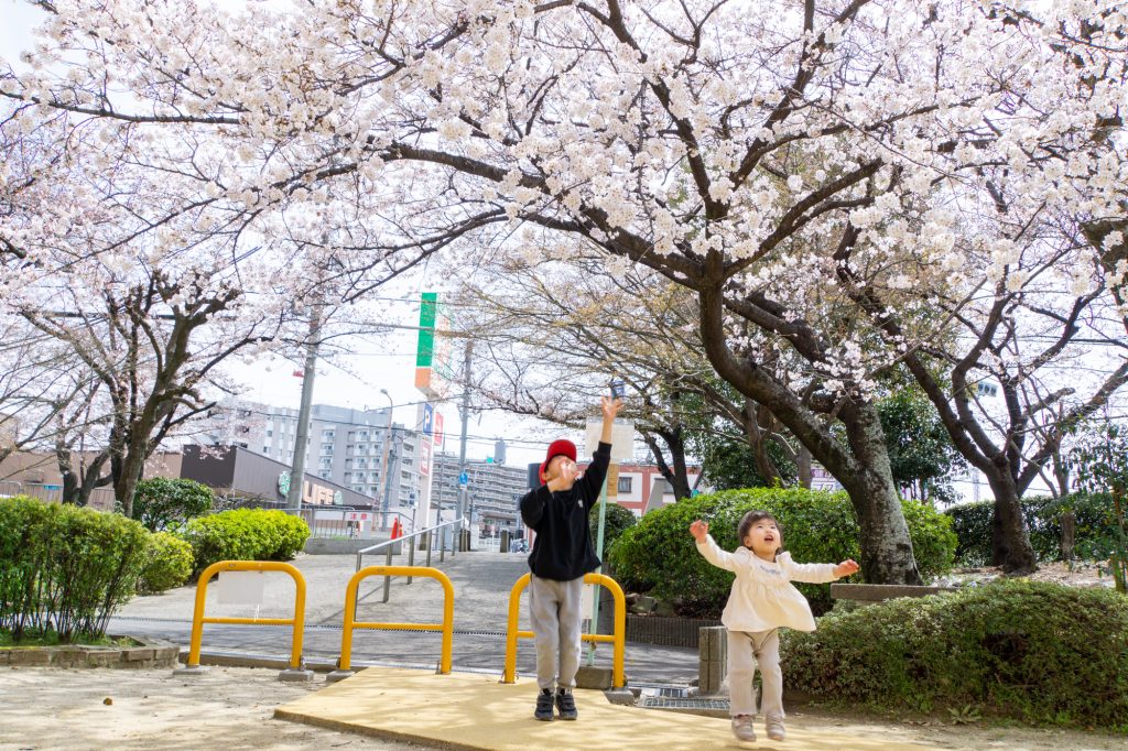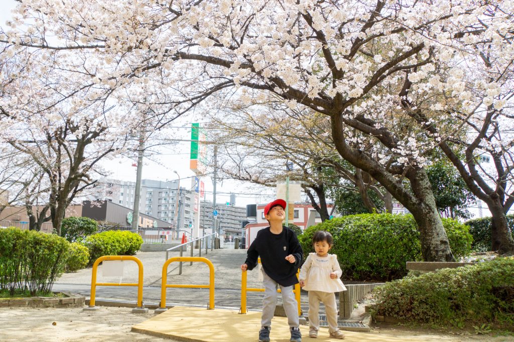 桜に囲まれた公園で出会った仲良し兄妹!