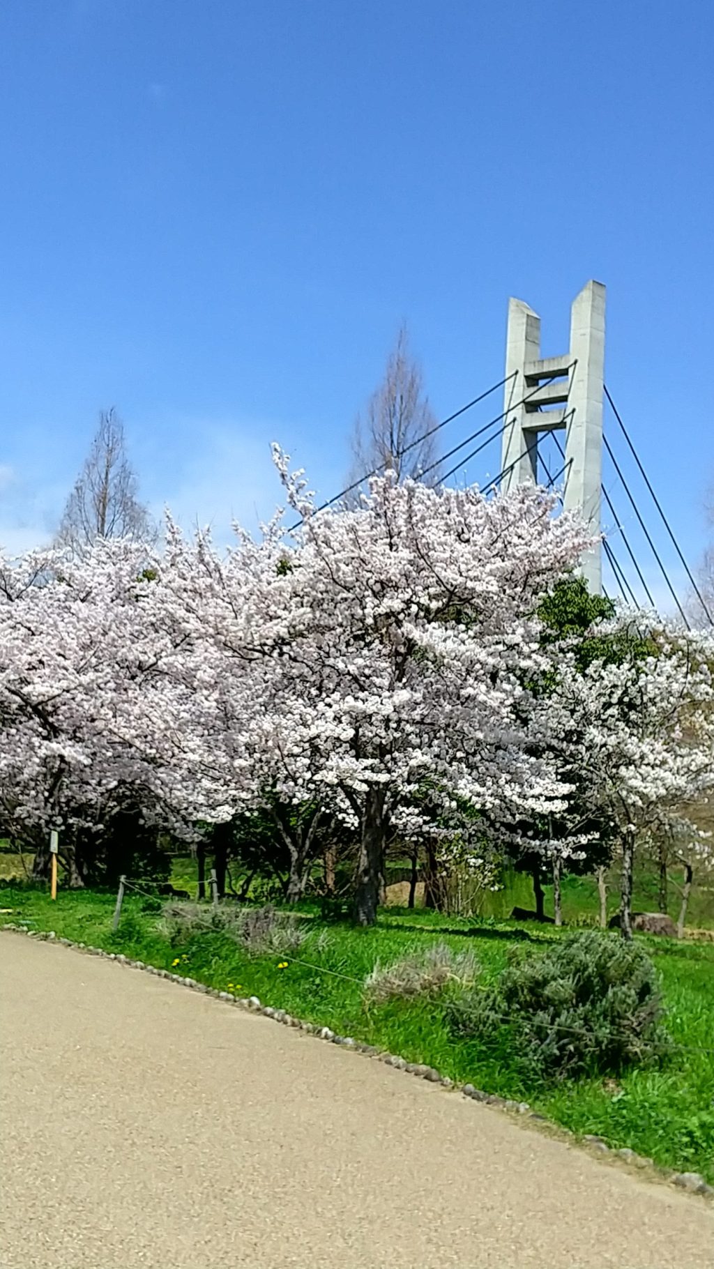 芝生の丘近くの桜の木が並ぶ通りを見に行きましたが、まだ咲いていませんでした。