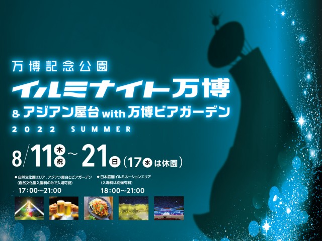 現在、万博記念公園では「イルミナイト万博」というイルミネーションが楽しめるイベントが開催されています。(~8/21)