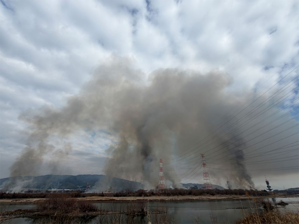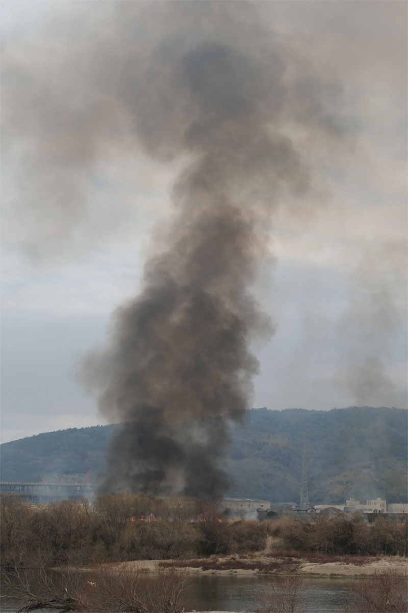 今回の【枚方フォト】は読者さんからご投稿いただいた枚方から見た高槻・鵜殿のヨシ原焼きの写真です。
